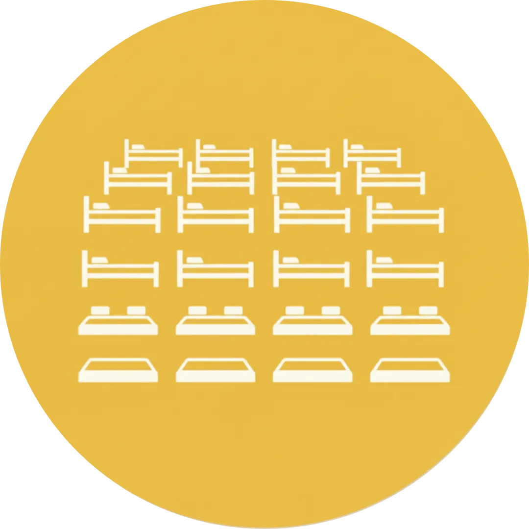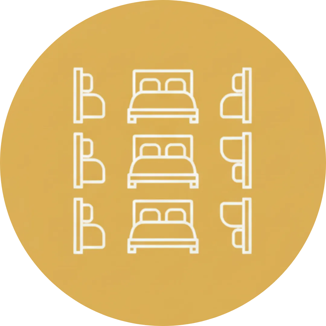Cotiza ahoraLas habitaciones son amplias con camas matrimoniales/queen. Para grupos grandes se agregan futones. Durante el día se disfrutan las áreas comunes; las habitaciones son solo para descansar.