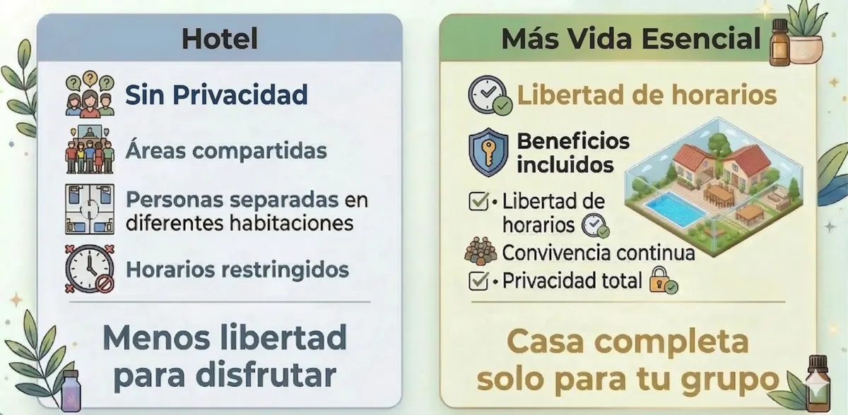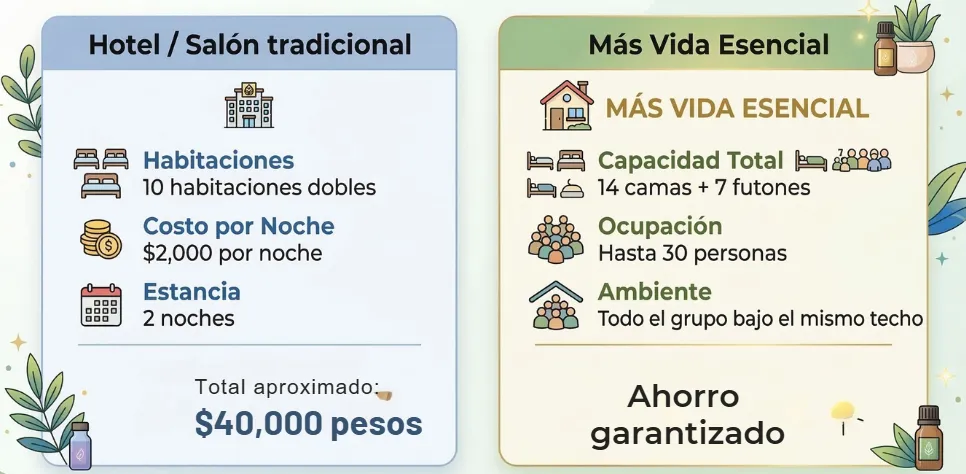 | Concepto | Hotel / Salón tradicional | Más Vida Esencial |